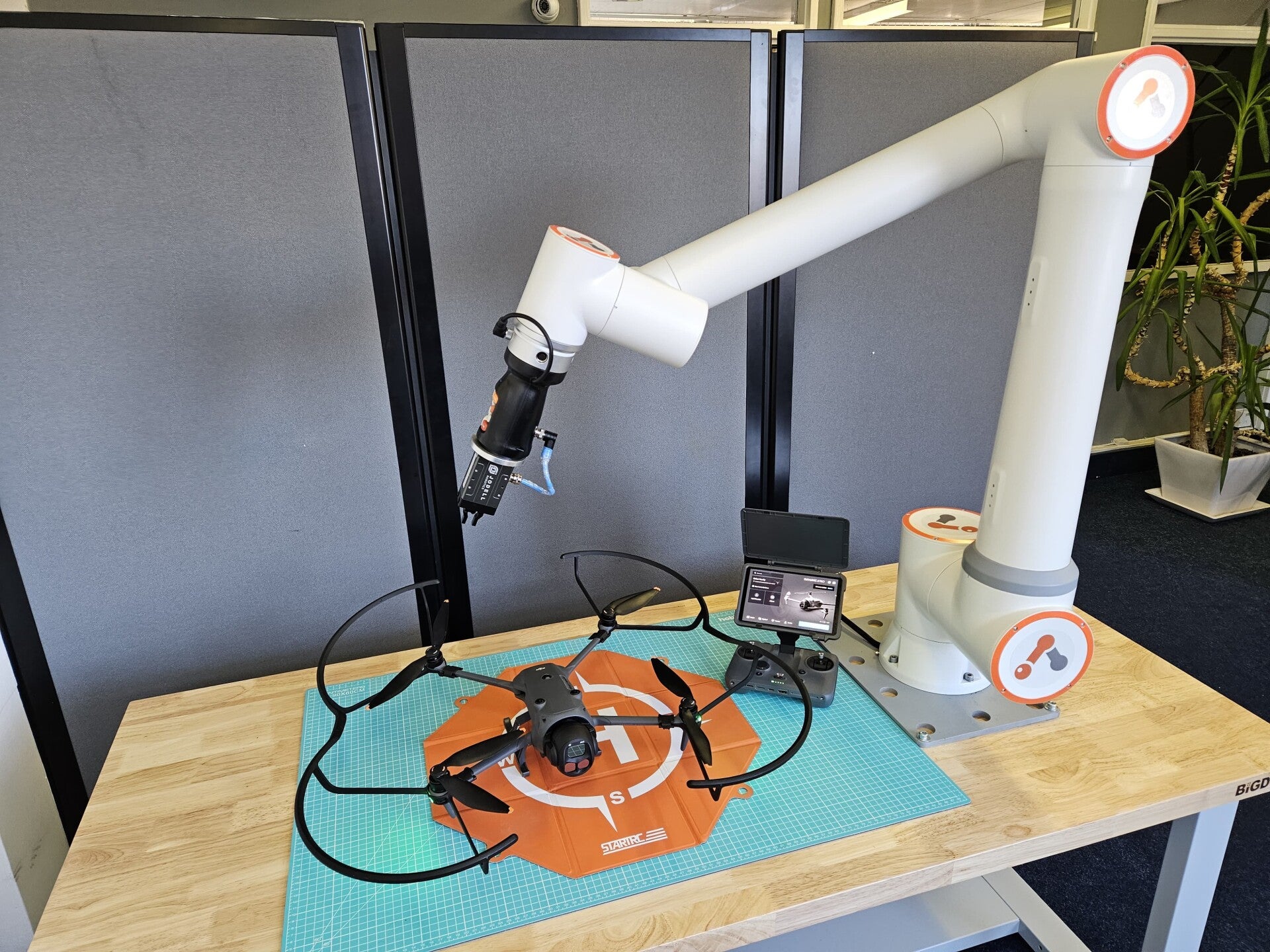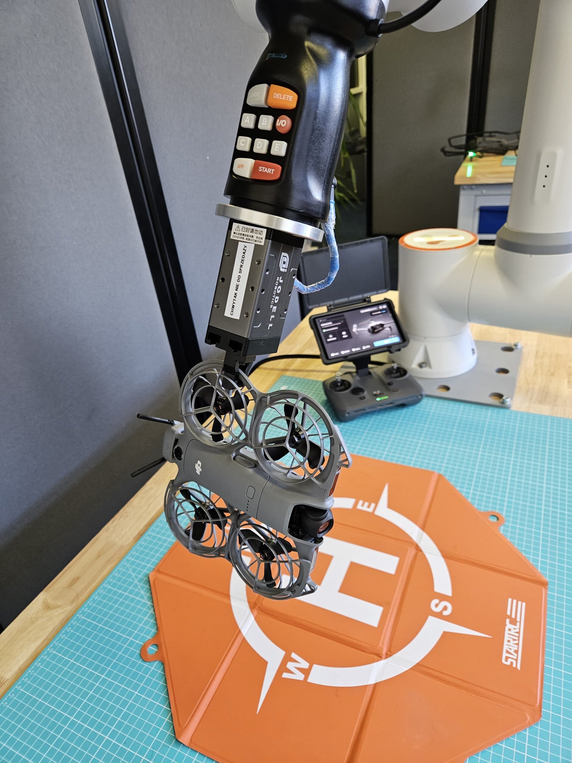 Any engineering field requiring repetitive actions as part of the testing or development process can easily benefit from Cobots support. Even daily routines of various devices can be performed automatically with one button press. Programming such scenarios could not be easier! As an example, we have trained our cooperative robot to perform basic drone calibrations in minutes. Repeatability is obviously the key word here from commercial angle but for us it is yet another satisfying use of cobot clearly showing that sky it the limit!